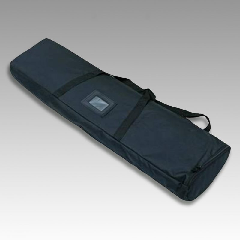 The kit includes the printed banner, stand hardware, telescopic pole, and nylon travel bag.