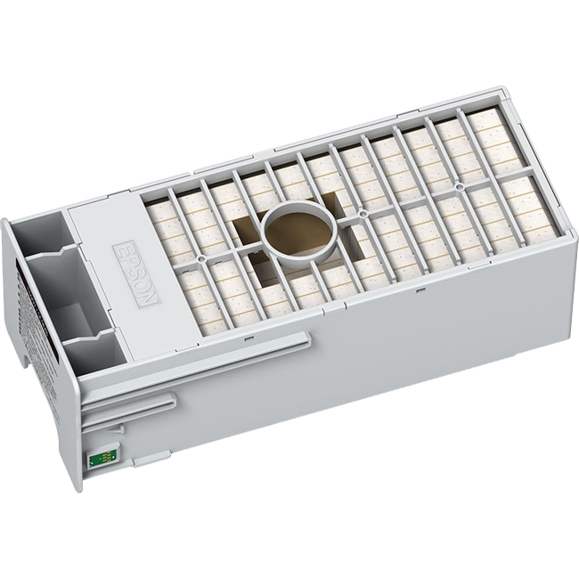 The maintenance tank is user replaceable and installs quickly, minimizing downtime in production environments. Epson printers automatically monitor tank capacity and alert users when the tank is nearing full or requires replacement, helping prevent unexpected interruptions during printing. The generous internal capacity ensures waste ink is contained properly, protecting documents, graphics, and printer hardware.