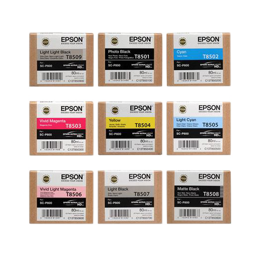 Epson T850 UltraChrome HD inks are available in the following colors and SKUs: