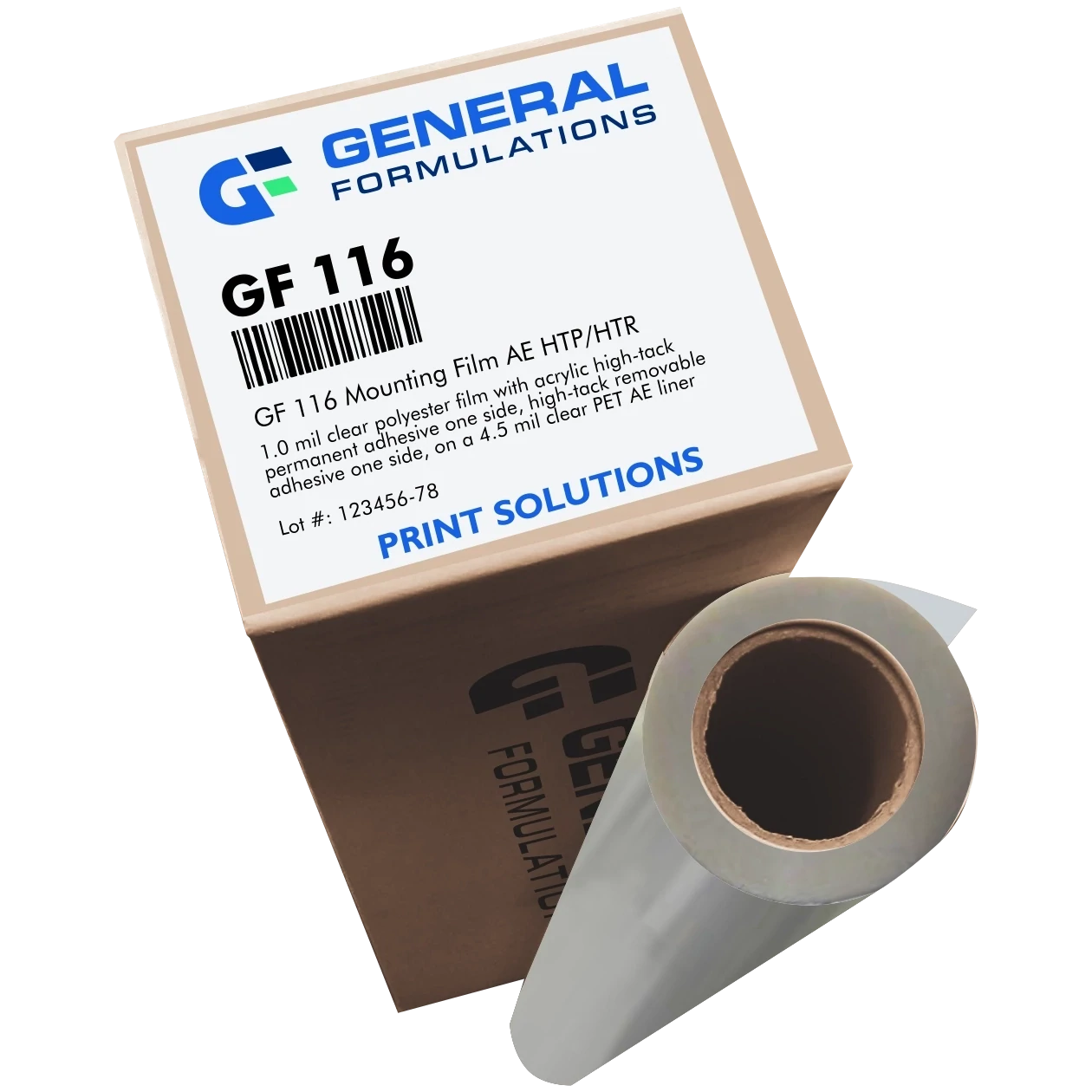 Choose GF 116 when clear polyester mounting film is required for strong hold and clean removal on glass.