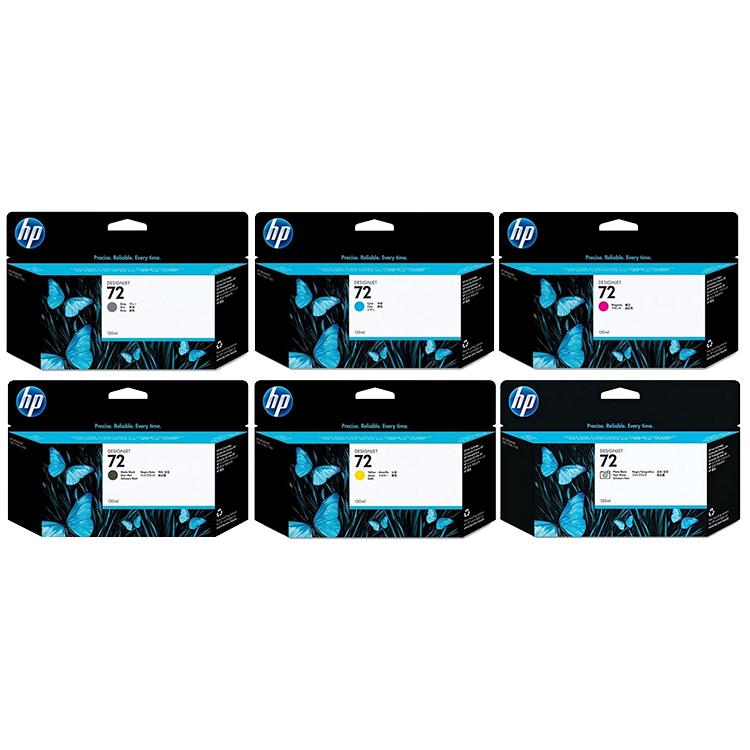 HP 72 130ml DesignJet Ink Cartridges are available in the following colors: