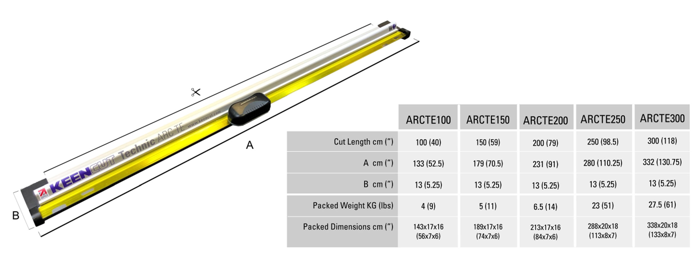 The Technic ARC TE Cutter is available in the following cut lengths: