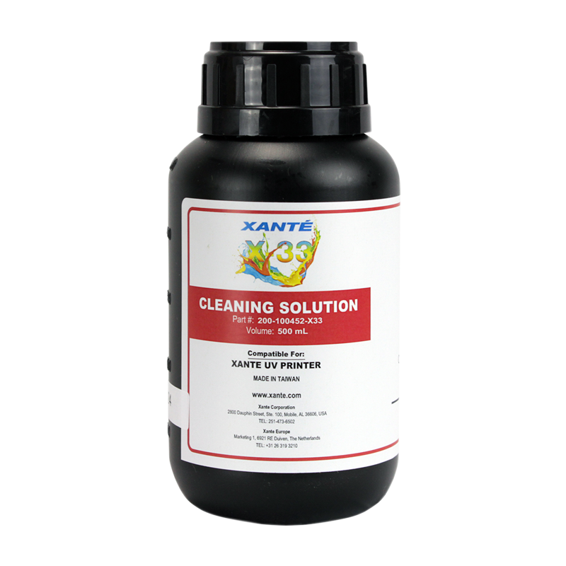 Xanté X-33 Cleaner VHD/UV Ink 500ml is a dedicated UV ink cleaning solution engineered to maintain ink delivery systems in Xanté X-Series UV printers. Specially formulated for Epson i3200 printheads, this cleaner flushes residual UV ink from lines and components to support stable jetting performance and prevent clog-related downtime.