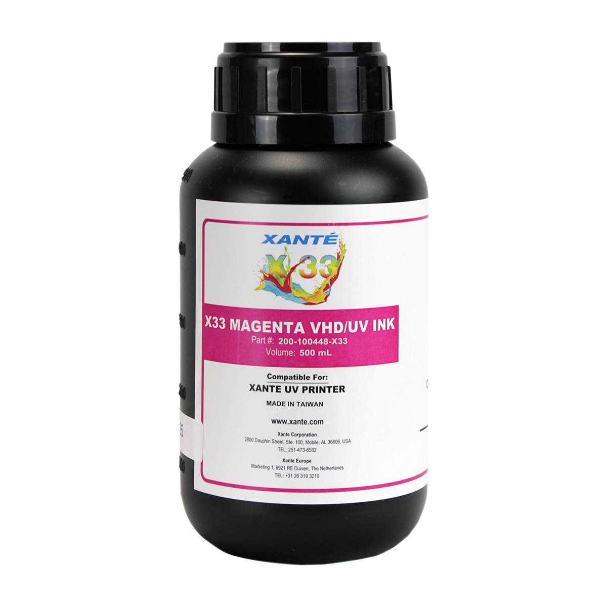 Xanté X-33 VHD/UV Ink 500ml is a professional-grade, high-density UV ink formulated for demanding production environments that require speed, durability, and consistent color. Designed for use with Epson i3200 printheads, this ink delivers smooth ink laydown, bold color saturation, and reliable jetting performance across high-speed, high-resolution workflows.