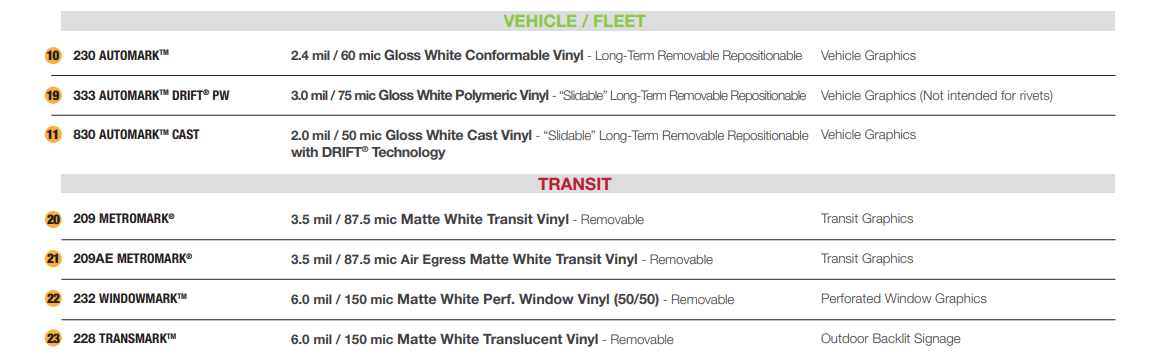 Vehicle, Fleet & Outdoor Graphics Vinyl